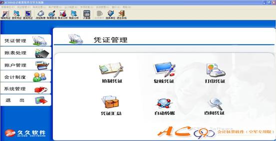 AC990財務(wù)管理軟件空軍系統(tǒng)是專門為空軍地勤部門設(shè)計的財務(wù)管理軟件,還包含固定資產(chǎn)管理與工資管理、進銷存模塊,軟件功能強大,簡單易學,是空軍地勤部門的核心部件?煞譃閱螜C版與網(wǎng)絡(luò)版。